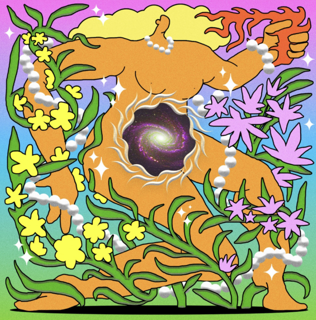 While no fixed concept shaped the album during its making, its emotional core revealed itself after the fact. Themes of release, rebirth, and feminine embodiment came into focus—vibrational, sensual, and rooted in the body. As Elninodiablo puts it, his creative process never starts in the mind: “It begins with an impulse in the body, a need to express. The meaning only becomes clear once the music is done.” In this case, the album became a vehicle for personal healing, especially through rhythm, movement, and bass. “It’s sacral, rootsy, and connected to freeing tension stored in my body,” he explains. The bold, unprompted artwork by Tobias Jacobsen intuitively mirrored this energy: otherworldly, vibrant, feminine.