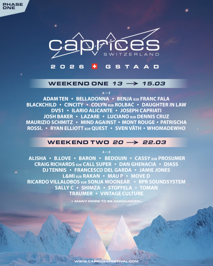 The two weekends each come with distinct moods. The first weekend, from March 13-15, is tailor-made for demanding dance floors, with a sharp blend of techno, house and melodic sounds in line with Caprices’ forward-thinking musical direction. The first phase of artists includes Adam Ten, Cincity, DVS1, Ilario Alicante, Joseph Capriati, Luciano b2b Dennis Cruz, Mind Against, Rossi., Ryan Elliott b2b Quest, Sven Väth, and WhoMadeWho (Hybrid Set).